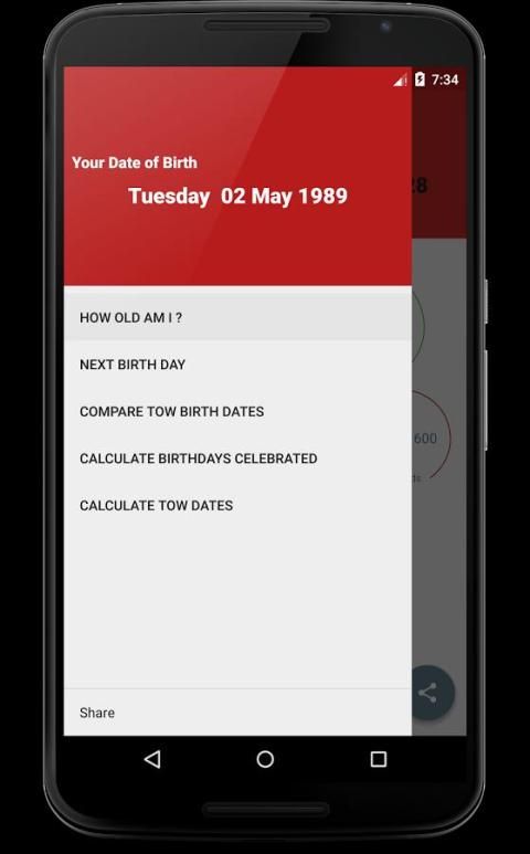и поделиться своим результата или день рождения в социальной сети ("Twitter, Instagram, Facebook, стакан, whtasapp, снимок .. и т.д.)