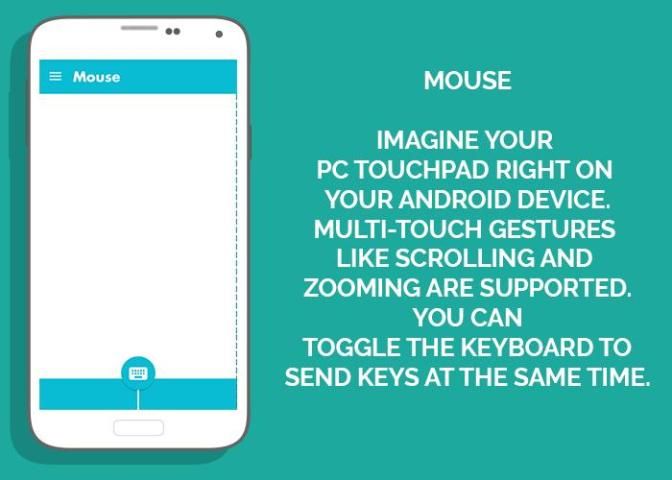 Представьте, что ваш ПК тачпад прямо на ваших Android жесты device.Multi как прокрутка и масштабирование supported.You можете переключать клавиатуру, чтобы отправить ключи по времени саами.