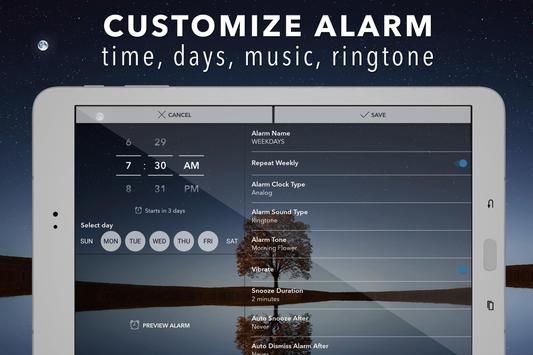 ♪ is an alarm that will help you sleep better and wake up happy and on time by listening to your favorite music or ringtone!