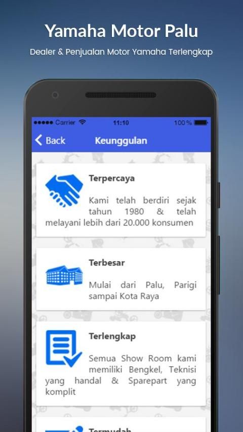 Наш Yamaha Motor Палу присутствует с 1980-х годов полны решимости служить вам в покупке мотоцикла Yamaha. Мы представляем все виды мотоциклов Yamaha с быстрым развитием новых акций.