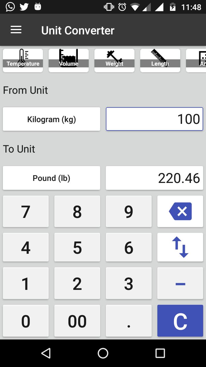 • Supports length, weight, width, volume, time, temperature, pressure, speed, fuel efficiency, and the amount of data.