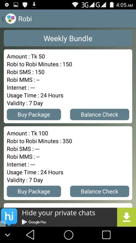 BD популярным 4 Mobile Oparator GrameenPhone, Banglalink, Роби, Airtel добавить "Minute Bundle предложение", "SMS Bundle предложение», «еженедельно Bundle предложение», «ежемесячно Bundle предложение для вас". "BD Все Сим Bundle обновления" приложение поможет Вам для покупки "Bundle пакет GP", "Роби Bundle обновления", "BL Bundle обновления", "Airtel Bundle обновления" по щелчку по.