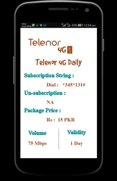 Пакет Ufone 3G 4G содержит подробную информацию о следующих пакетов