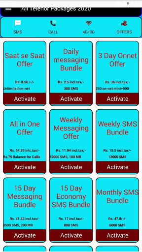 Telenor Packages 2020 App includes all codes which encompass call Packages, sms Packages, net programs, data Packages.