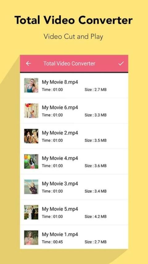 Total Video Converter или Video Converter или Video Cutter является простым и легким в используется для просто выбрать видео, и вы просто нажмите на видео форматы, которые вы хотели бы преобразовать файл из этого, и вы получите легко преобразовать в этот формат с простым нажатием на новообращенного.