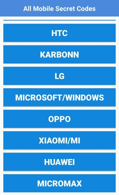 В этом приложении, включают коды всех андроид устройств: Samsung, Sony, Lenovo, Motorola, Xiaomi / MI, BlackBerry, Китай, HTC, Karbonn, LG, Microsoft / Windows и Oppo.