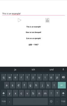 First there is a simple text input on the start page, via which you can write text and let your Smartphone read aloud from it. As well as four templates can be store with it.