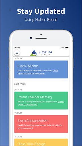 Altitude Classes provides excellent training for students to crack IIT-JEE & Medical Entrance Exams and this e-learning app helps the institute by providing the following features for Students and Parents along with real-time notifications