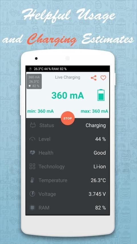 Наиболее предпочтительный применение и наиболее полезным на Google Play Store для каждого мобильного телефона, который показывает время зарядки наиболее точной батареи, а также указывает на то тока и напряжения зарядки, которые позволяют определить качество вашего зарядное устройство / USB кабель используется. Эта лампа удивительное время приложение загрузки информирует Вас о том, как долго он будет принимать для вашей батареи, а также сообщить об использовании оперативной памяти в прямом эфире, с помощью которого вы можете принудительно прекратить эти приложения замедляют ваше устройство. Это очень полезно и должен иметь приложение, которое измеряют ток для зарядки и разрядки аккумулятора при использовании.
