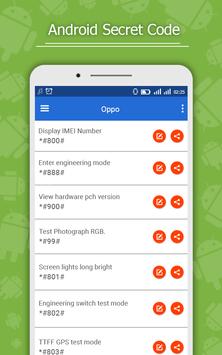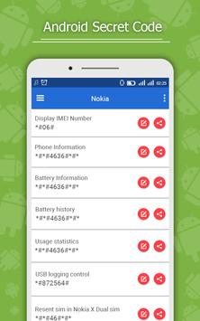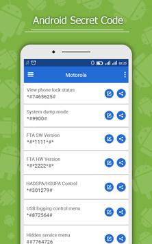 Android Secret Codes from is a free application from which you can review and use of all the hidden codes, confidentiality, and that work on all mobile operating system Android. There is also a group of secret codes for SAMSUNG, HTC, SONY, Motorola, LG, Lenovo, Oppo, Xiaomi, Infinix phones.