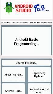 In this section If u have any queries regarding programming within an app, you can directly ask by clicking on mail Id given in the activity itself which will directly open your Gmail account and you can read our privacy policy regarding Android Studio Talk which will explain about this app.