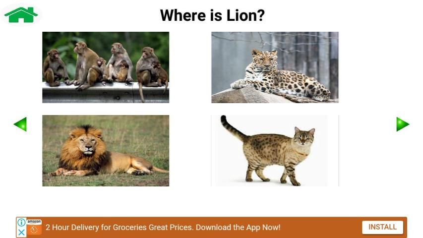 Дети могут играть в игру «Где это животное?», Который может научить их распознавать животных и их звуки.
