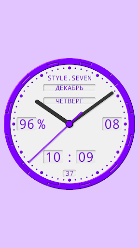* Семь цветовых тем, выбор цвета фона и секундной стрелки;
