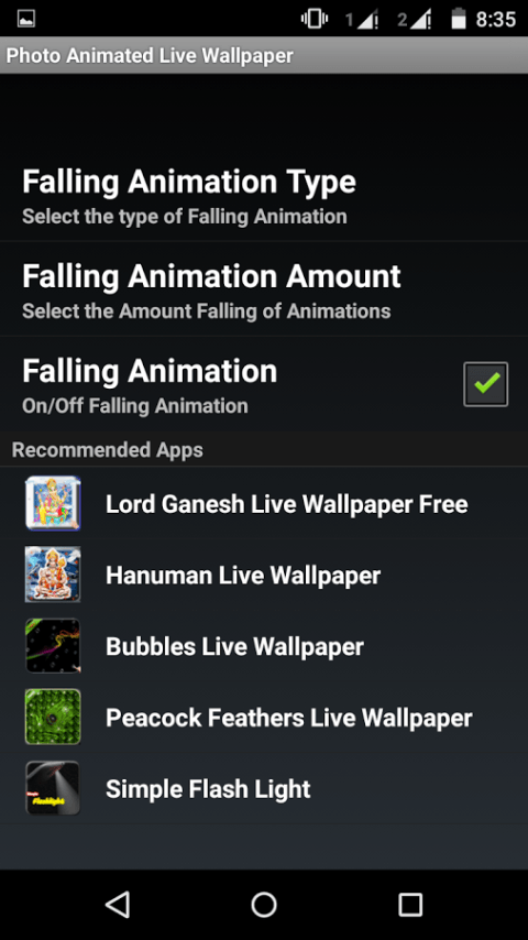 4.Select Different Animation Types (Rain,Snow,Balloons and bubbles).