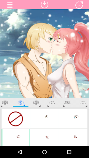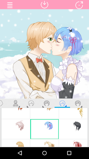 app that can create anime kissing couple character. You can create anime couple by yourself from anime maker features. A kiss can express sentiments of love, passion, respect, greeting, friendship, and good luck, among many others.