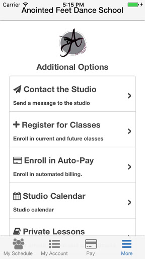 Manage your entire dance studio experience with the all new Anointed Feet Dance School app. Enjoy mobile check-in and on the go tuition payments. Stay up to date with all the latest information from the studio. Never miss a beat.