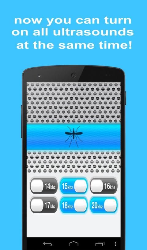 Turn on ALL the different frequencies at the same time and make your room 100% mosquito FREE! There are about 3427 mosquito species in the word and they all react different to high frequency sounds (ultrasounds). Some frequencies just won't work on some species. But most anti mosquito apps only let you turn on one frequency at a time, this means it's up to you to find the right one and it will leave you exposed to other mosquitoes. WHY? Our Anti-Mosquito app let's you turn on all the different ultrasounds at the same time. This ensures you that you will catch all the mosquitoes and leave non out. Use our app for a hassle free, good night sleep. The app has different frequencies which can be send out simultaneously: 14, 15, 16, 17, 18, 20 KHZ. It might be possible that you can hear the lower frequencies (depending on your age), no problem. Just leave leave those off and only turn on the others sounds. You can also lock your phone / turn off screen and the sounds will continue to play. And if you want to leave the app, do it with your HOME button, this way the sounds will continue to play. TURN ON THE APP, LEAVE IT NEXT TO YOUR BED AND WE WISH YOU A GOOD NIGHT SLEEP.