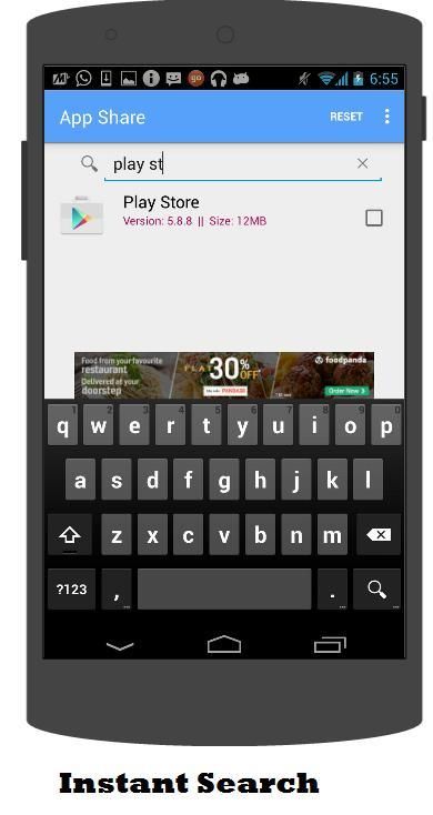 * Apk Share поставляется с мгновенный поиск искать приложения на устройстве.