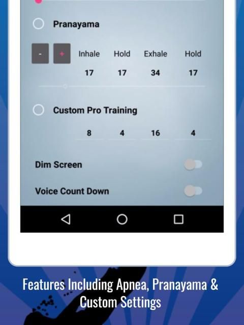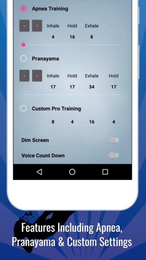 Программа также пригодится только до фактического погружения, так как режим пранаяма уже включен. Апноэ тренер поможет вам сохранить ваше тело спокойно и дать вам прекрасную подготовку этих удивительных, долговечные погружений.