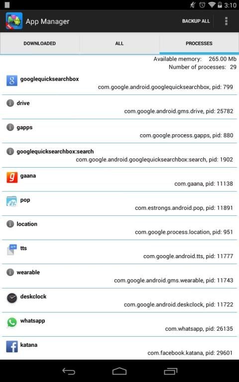 Manage Your Apps easily. This application manages your installed and system apps both. Now no worry about system application back up and share.It shares system apps and also You can back up system application. Main Features: * Back up All System and Installed app in on Click !!! * Share and back up System applications !!! * Running processes list and also launch process + know about process package name. !!! * List of Installed apps, System apps and processes. * Launch,Go settings,Share,Backup and uninstall Application. * Memory Status of Internal and External storage Plus Process and RAM info. * Direct go to System Settings. * No Ads or no other useless contents. This application has only one permission: Allow Read / Write External Storage for backup files. With this application you can easily back up your applications Which is stored in below path on your device: PATH: sdcard / App Manager/ Backup (For Back up files) PATH: sdcard / App Manager/ Shared (For Shared Files) NOTE: Check your sdcard sufficient storage info before backup or share app. Facebook Page: https://www.facebook.com/androidPAIDAppsForFREE