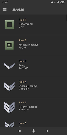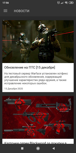 Приложение содержит новости информация по оружию, нашивкам, жетонам, модулям, рангам, значкам из проекта Warface.