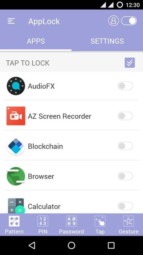 Открыть AppLock, Выберите тип блокировки в нижней части экрана