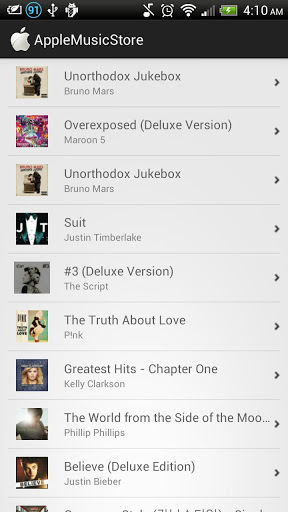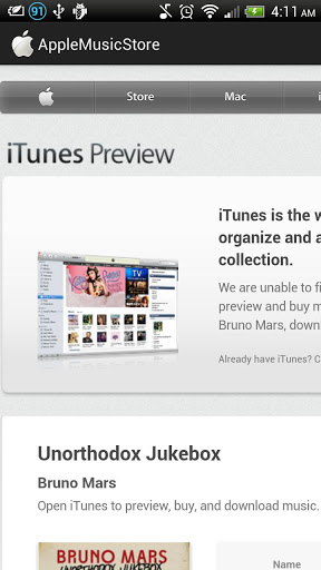 The world's best digital music jukebox This is new apple music store which will show list of current popular music track names your latest music discovery.You can completely able to access the Apple Store (Rock, Country, Pop, Hip Hop, Dance) on your android device.
