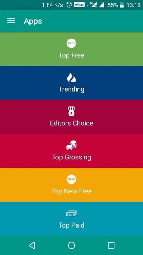 Added shortcut to view Play Store top free Games and Applications.