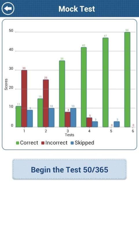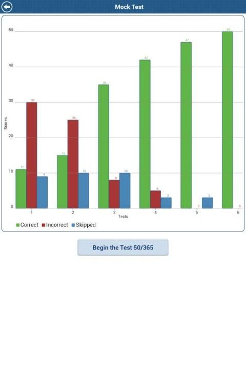 Он показывает вам красиво анимированный диаграммы бар, так что вы можете отслеживать ваши слабые места и повторите вопросы, которые вы ответили неправильно.