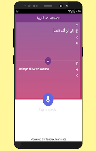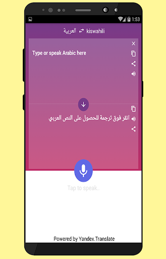 This Free App is able to Translate Words and text from Arabic to Kiswahili, And Kiswahili to Arabic. Best App for Easy and fast Translations. If you are a Student, Tourist or Traveler, It Will Helps You to Learn the Arabic and Kiswahili Languages!