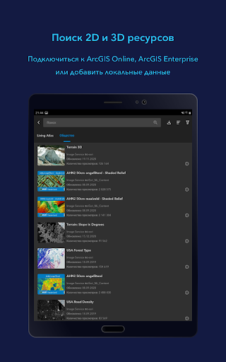 • Просмотр веб-сцен, картографических сервисов, сервисов изображений, сервисов сцен и сервисов объектов.