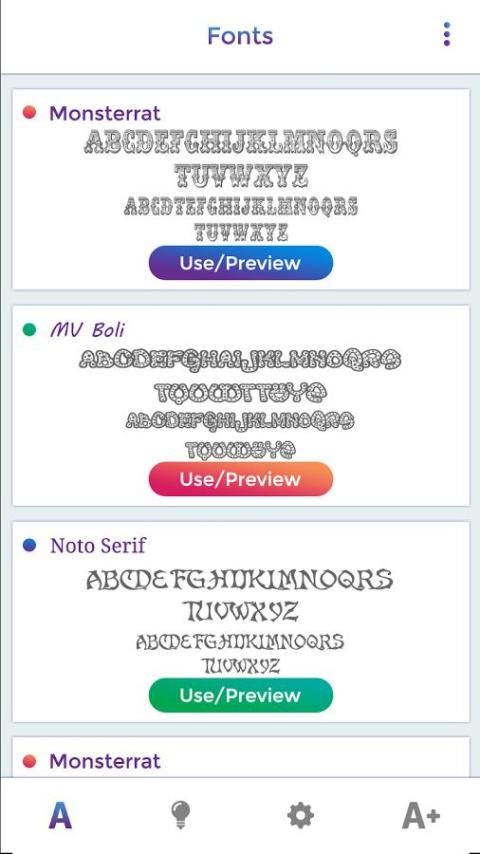 ==> Первый экран для отображения списка вариант, который вы хотите выбрать для стиля образца шрифта.