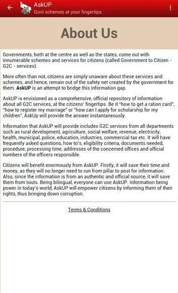 AskUP предусматривается в качестве всеобъемлющего, официального хранилища информации обо всех услугах G2C, под рукой граждан. Будь то "как получить продовольственную карточку", "как зарегистрировать свой брак" или "как я могу подать заявление на стипендию для моих детей", AskUp даст ответ мгновенно.