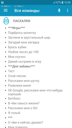 Эта программа является списком команд, которые могут быть использованы для поисковых голосовых запросов в приложении "Google" от одноименной компании.