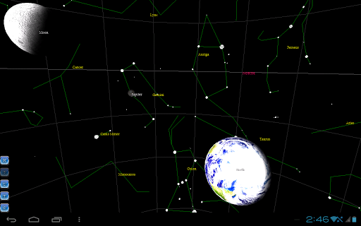 Программа показывает созвездия и звезды так, как их видно на небе в текущий момент.