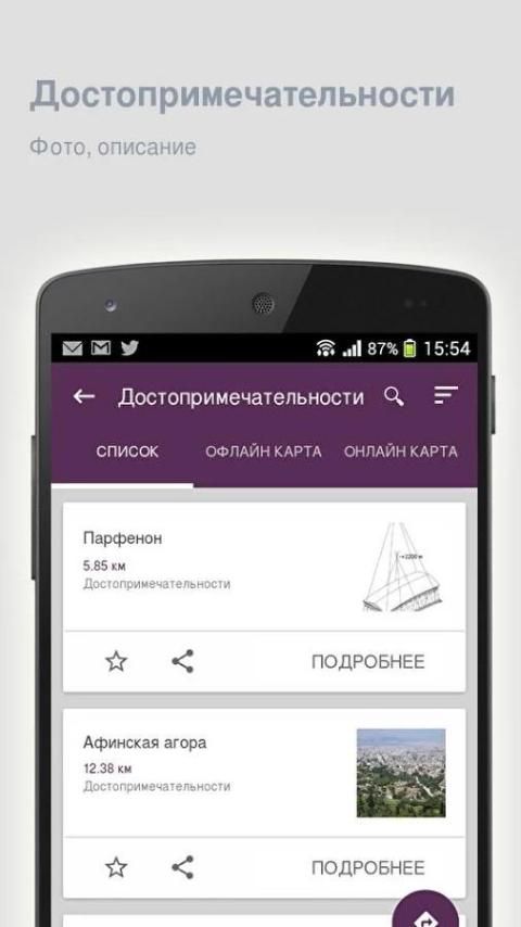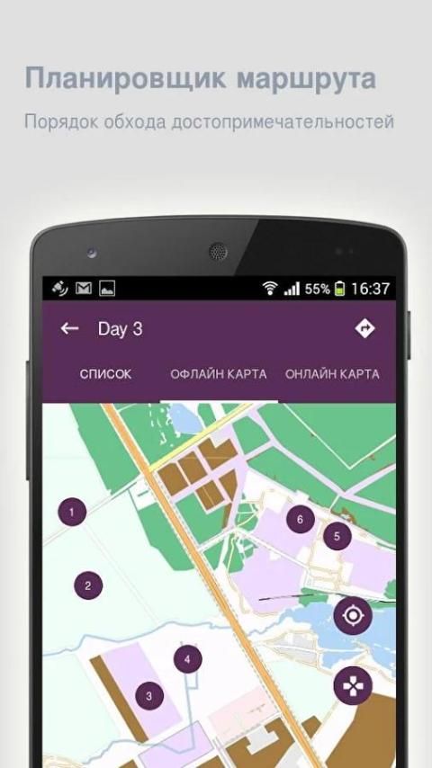 - Встроенный планировщик маршрута позволит составить план обхода достопримечательностей.