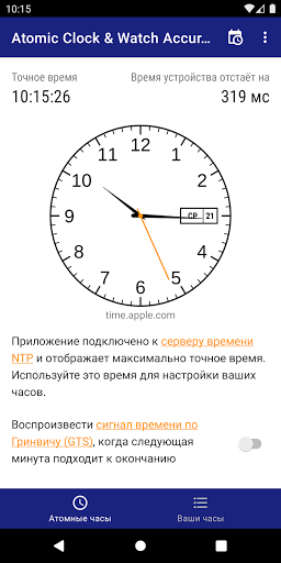 -Это приложение может подключаться к серверам времени NTP и отображать точное время