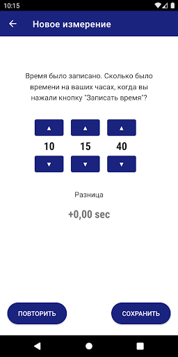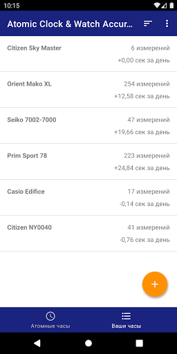 - просто нажмите в приложении, дайте приложению знать, сколько времени было показано на наручных часах, и приложение будет вести всю статистику и показывать вам график точности