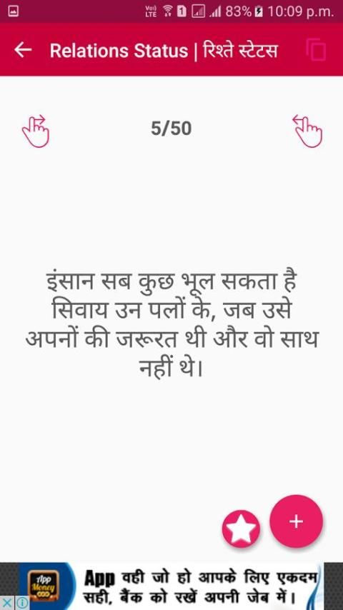 Выражая свои чувства & настроение теперь легко. Отношение Статус Применение ваша собственная библиотека свободного статуса, Shayari, Вдохновенный хинди и английский цитаты и многое другое Collection.