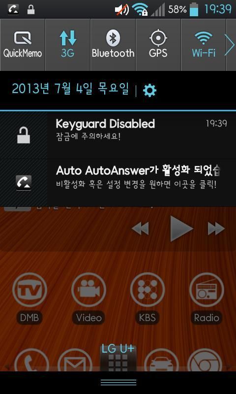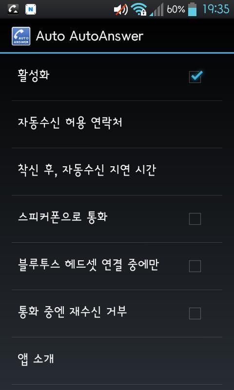 - * Пожалуйста, проверьте активацию экрана настройки из верхней запуске приложение, оно включает в себя следующие функции, вы можете использовать авто-ответ. При активации, панель уведомлений (панель уведомлений) останется небольшое меню формирует часть. Это означает, что injeukseun, и показать, что, когда в следующий вызов автоматически переключается в состояние вызова через несколько секунд. Если вы хотите, чтобы выйти, чтобы отключить панель уведомлений, нажав Если разделе меню, вы в первый раз на экране настройки.