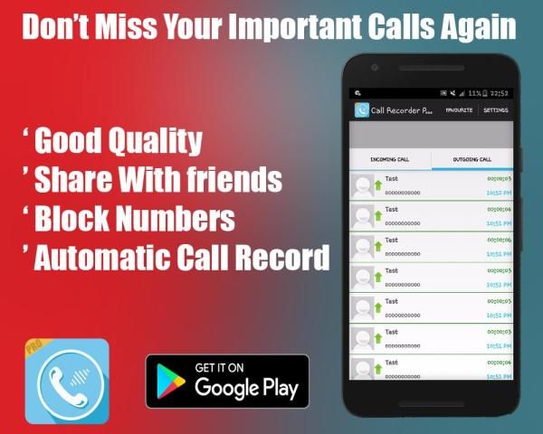 Автоматическое Recorder Call - Про создание приложений, которые имеют возможность автоматической записи исходящий и входящий телефон / смартфон и повторите слушать его в любое время. Вы можете настроить фильтр люди хотят записать, очень удобно.
