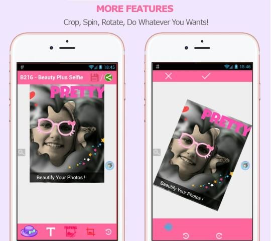 Поскольку эта красота плюс камера является простой редактор фотографий, вы можете украсить внешний вид ваших фото, лицевой стороной вверх, возьмите, играть, делиться! Этот броский редактор фотографий предоставляет обширную коллекцию уникальных произведений искусства и ручными шрифтов, а также множество вариантов настройки для всех творческих бит вы добавляете в свой фотографии. С помощью этого редактора вы можете Пополните ваши фотографии, полученные из вашей камеры г в художественном пути с удивительной Фотофильтр!
