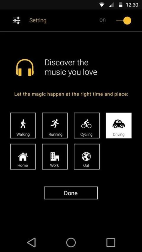 - Discover music by activity (Walking, Running, Driving, Idle)