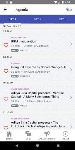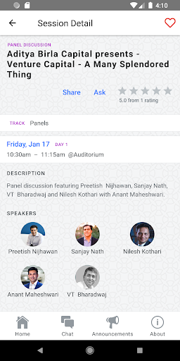 - View Tracks, Sessions, Speakers. - Favorite tracks, sessions and speakers and create your agenda. - Rate sessions. - Ask questions in sessions. - Chat with the community.
