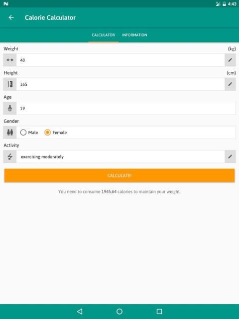 Калорийность Калькулятор может быть использована для оценки калорий вы должны потреблять каждый день, чтобы поддерживать свой вес.