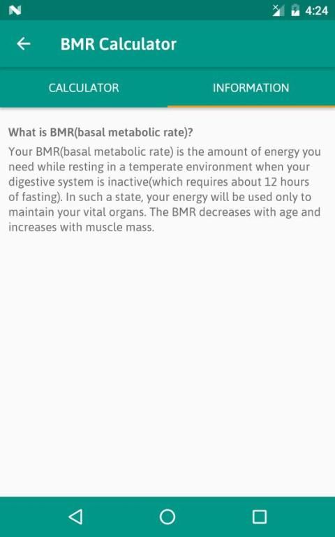 Базальной Скорость метаболизма (BMR) является количество энергии, вам нужно во время отдыха в умеренной среде, когда ваша пищеварительная система неактивна (которая требует около 12 часов голодания). В таком состоянии, ваша энергия будет использоваться только для поддержания жизненно важных органов. BMR с возрастом уменьшается и возрастает с увеличением мышечной массы.