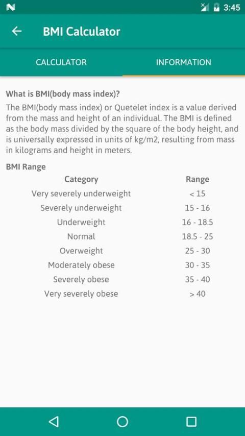 Он также известен как индекс Кетле и широко используется в медицинской области. Это даст вам точное представление о вашем теле, жира, мышц и костей. В соответствии с этим он даст вам результат, что вы недостаточный вес, нормальный вес, избыточный вес или страдают ожирением.