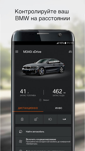 • КОНТРОЛЬ: Вы можете заблокировать или разблокировать ваш BMW, узнать статус автомобиля, например, запас топлива и запас хода, где бы вы ни находились.