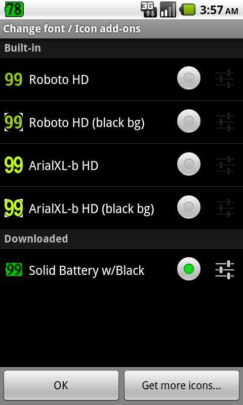 Для Android 3.x пользователей / 4.x, которые хотят иметь самые яркие цвета на их возможные тусклые состояния баров, посмотрите на нашу HD дополнений с "Ъ" после имени шрифта. Скачать HD дополнения в пределах батареи Notifier Pro BT или поиск "bnbt" в вашем браузере на Google Play.
