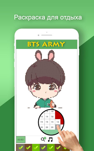 BTS Pixel Art - Color By Number, совершенно новая книжка-раскраска для взрослых, детей и специально для поклонников BTS, позволяет рисовать сотни красивых, веселых и симпатичных пиксельных рисунков о звездах K-POP. 200 красивых работ, 5 HD сложных картинок, предоставленных вам, чтобы раскрасить по номеру, все бесплатно!